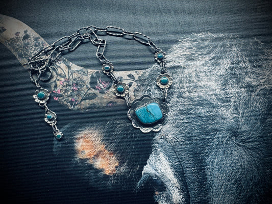 Turquoise Flower Statement Sterling Silver Necklace
