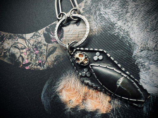 Sterling Silver Obsidian Skull Coffin Necklace