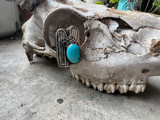 Fox Turquoise Silver Cactus Statement Ring