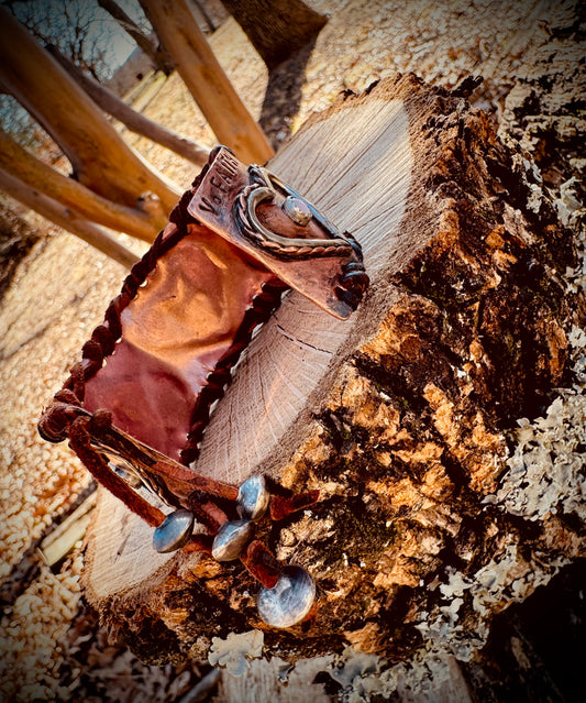 Hubei Turquoise and Pink Conch Silversmith Steer Necklace