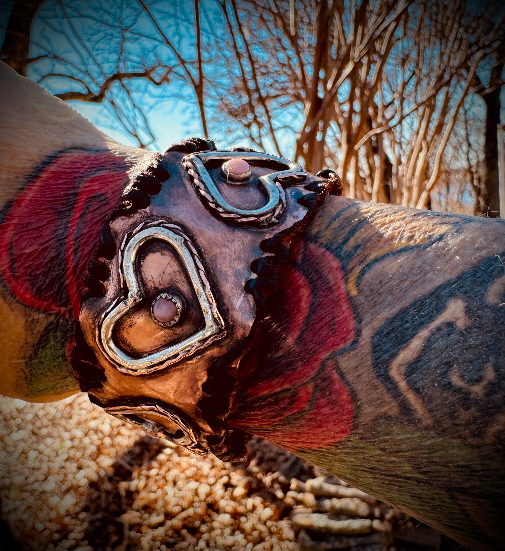 Rooted in rustic charm and timeless craftsmanship, this handcrafted leather bracelet is designed to tell a story. Made from rich, distressed copper and accented with sculpted heart-shaped metal details and leather trim, each piece blends warmth, texture, and character into a truly unique accessory.