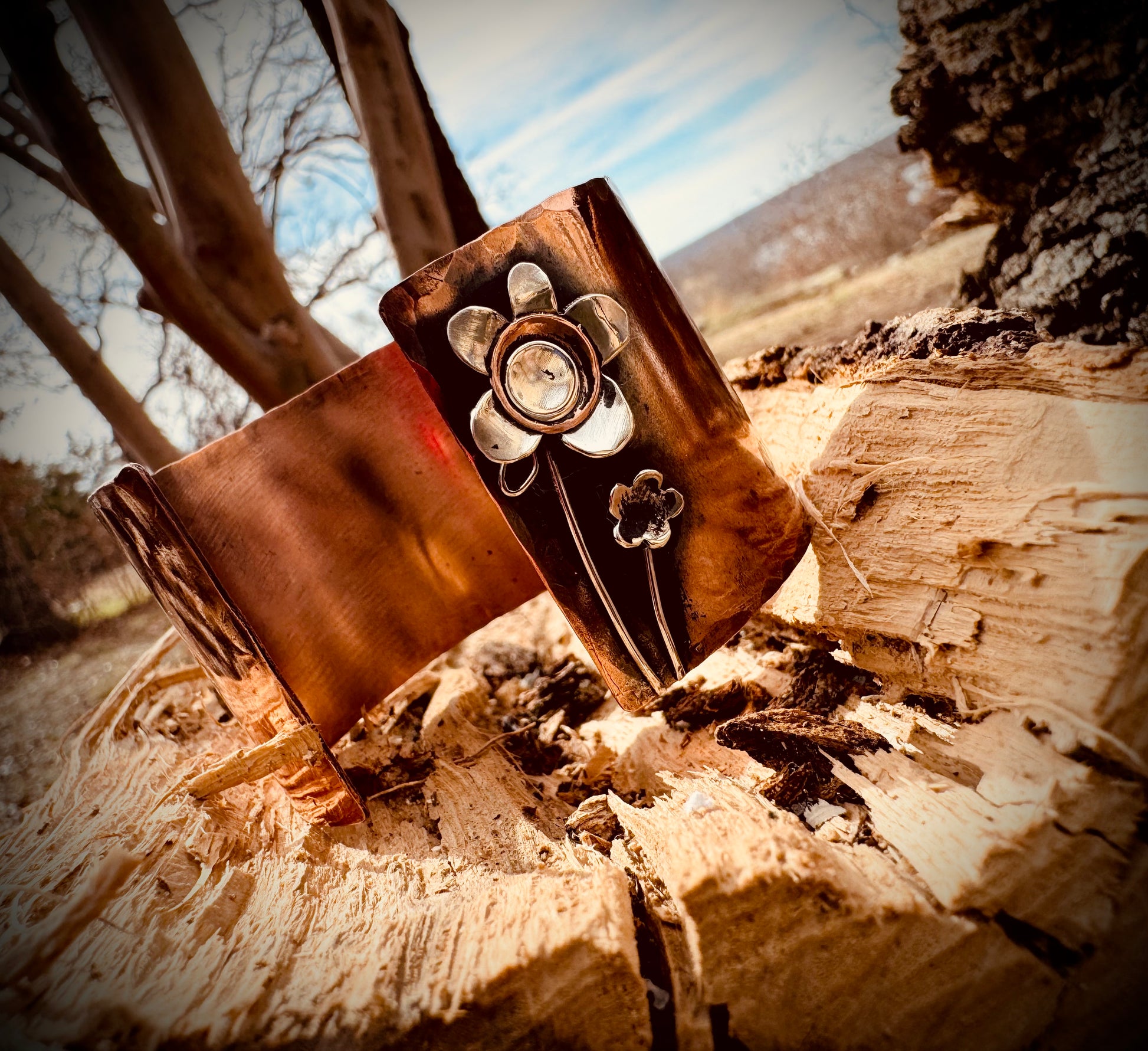 Rustic Copper Flower Cuff
